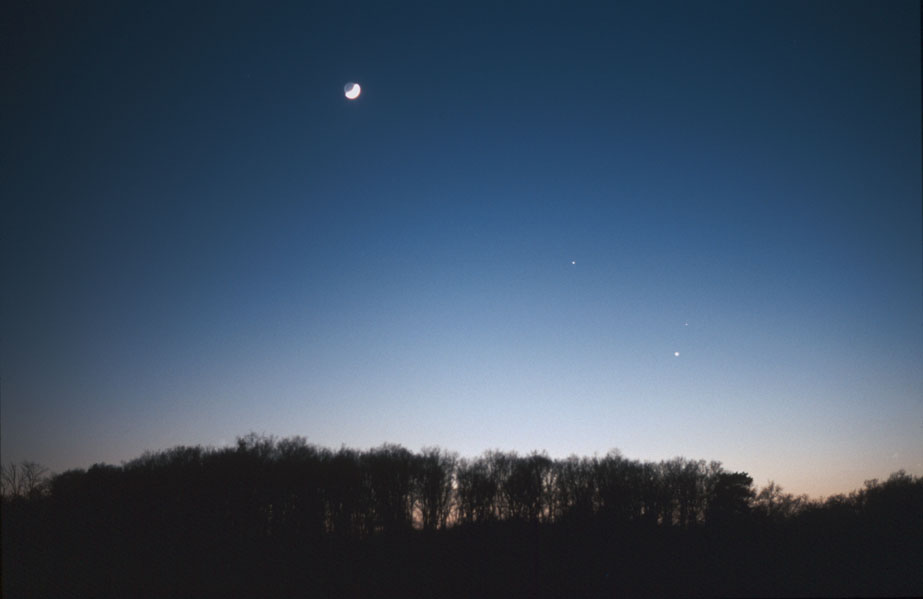 Mond, Jupiter, Saturn und Mars am 7.4.2000