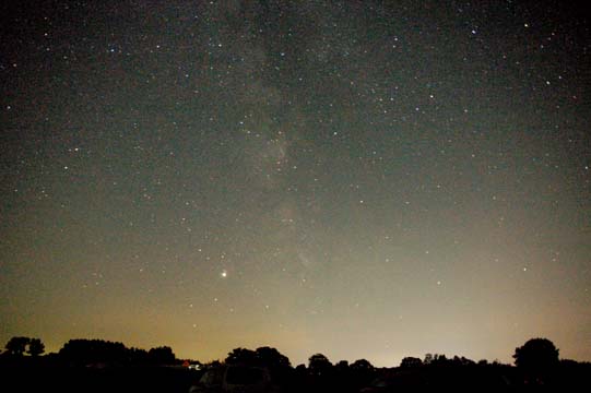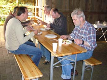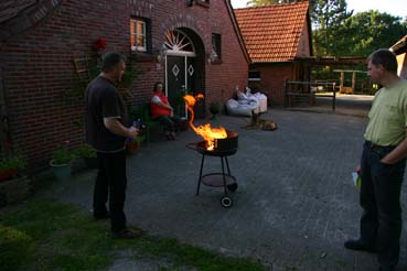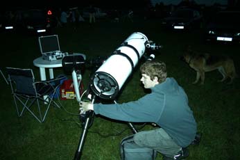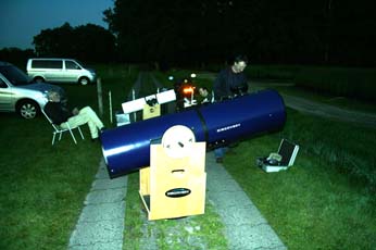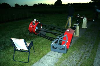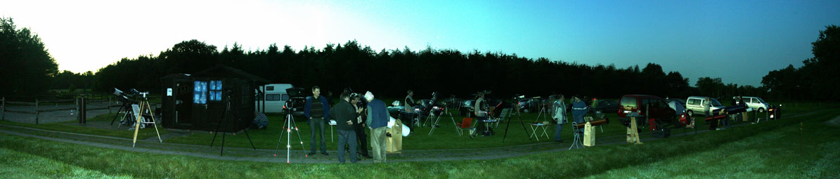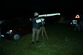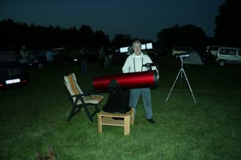 Es sah ja zunächst so aus, als ob das Wetter nicht so richtig mitsspielen wollte. Am Freitag Abend zog der Himmel erstmal zu, sodass wir in aller Ruhe den Grill anwarfen. Es gab Grillfleisch und Bratwurst in der großen Scheune. Ab und zu klarte es für kurze Zeit auf. Richtig gut wurde es erst gegen Mitternacht. Der Himmel wurde klar wie selten. Die Milchstraße leuchtete hell über uns und es konnte nun endlich beginnen, das 10. TT unseres Vereins!