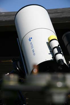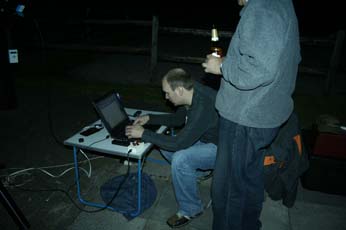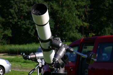 Im 16 Zoll Dobson von Christian Harder konnten wir nicht nur zahlreiche Nebel und Galaxien sehen, sondern auch den einen oder anderen schwachen Kometen. Auch im 8 Zoll Dobson von Martin Tanfal waren viele schöne Sichtungen möglich. Dies war sicher auch die Nacht der Astrofotografen. Links neben meiner Sternwarte machten es sich Oliver Stiehler und Christian Ahlers gemütlich. Olli testete seine neue Losmandy Montierung unter seinem 9 Zoll Maksutov aus. Eine stabile Kombi für Fotos... Die Laptops der beiden störten nicht, da sich beide quasi hinter der Hütte befanden, ausser Sicht der Beobachter. Ich selber probierte meinen neuen “Willi” aus, ein Wiiliams Megrez 72 / 432 ED APO. Der visuelle Eindruck war sehr gut, ein absolut knackscharfes Bild. Am ersten Abend waren nur 10 Sternfreunde anwesend, man hat wohl dem Wetter nicht vertraut... Für alle anderen: Pech gehabt. Diese Nacht war die bessere von beiden! Um 5 Uhr war dann Matrazenhorchdienst angesagt. Es dämmerte so langsam...