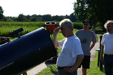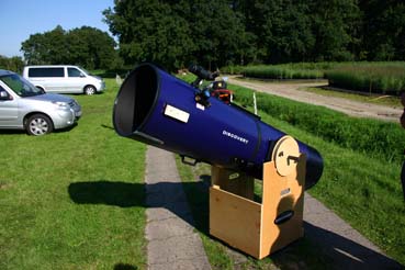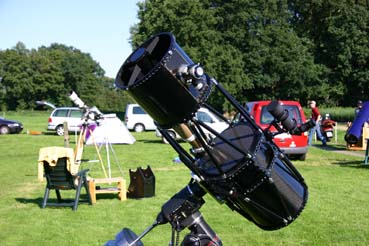 Am Samstag war der Haupt Anreisetag. Im Laufe des Tages trafen Sternfreunde aus Hannover, Wilhelmshaven, Emsland, Leer, Bremen und Delmenhorst ein. Ca. 40 Sternfreunde bevölkerten nun die Wiese. Es kündigte sich wiederum eine Supernacht an. Das Wetter spielte heute von Anfang an mit! Zu Beginn am Nachmittag konnten wir durch den 90mm Coronado von Dirk Lucius zahlreiche Protuberanzen auf der Sonne beobachten. Ein Superbild!! Um 19 Uhr war wieder Grillen vor der Scheune angesagt. Bei Bratwurst und Fleisch sowie Bölkstoff ließen es sich die Sternfreunde richtig gutgehen. Danach sollte der Jupiter das erste Reiseziel der Nacht sein. Mittlerweile stand von Dirk Lucius noch ein weiterer 16 Zoll Dobson auf der Wiese. Auch besonders schöne Teleskope waren zu sehen, z.B. ein selbstgebauter 12 Zoll Gitterrohr Newton. Oder auch seltene Geräte wie z.B. ein 5” Schiefspiegler von Günter Wenke. Der Anblick der Sterne war hiermit sehr beeindruckend. Mehrere kleine und große Dobsons waren vertreten, sowie auch einige Refraktoren. Auch Meade GoTo Teleskope und ein C8 Ultima waren vertreten. Eine Besucherin brachte ihren kleinen Sohn mit. Ein Weihnachtsgeschenk funktionierte nicht richtig. Das Gerät wurde dann etwas optimiert und ist nun einsatzfähig. Das Gerät sowie die Funktion wurden erklärt Auch dazu ist ein Teleskoptreffen da!