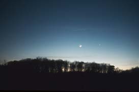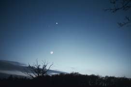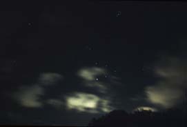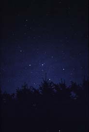 Ab hier zeige ich Stimmungsaufnahmen, die noch auf Farbdiafilmen fotografiert worden sind. Für solche Bilder braucht man noch nicht einmal eine Spiegelreflex Kamera. Eine einfache “Knipse” reicht, wenn man Langzeitbelichtungen machen kann. Als Film verwendete ich damals Fujichrome 400. Als dieser Mitte der 90er Jahre verändert wurde und nicht mehr diesen schönen blauen Stich hatte, wechselte ich zum Kodak Elitechrome 200, der bis heute nicht verändert wurde. Dieser Film hat einen Schwarzschildexponenten von über 0,9, d.h. er ist sehr Langzeitempfindlich. Er eignet sich daher auch sehr gut für Deep Sky Fotos.
